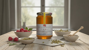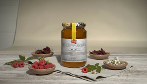 Discover raspberry honey, a treasure of nature with a subtle and fruity flavor, harvested in the spring when the raspberry bushes are in bloom. This exceptional monofloral honey is a true delight, offering a unique and refined taste experience.