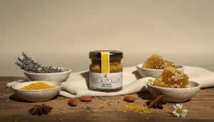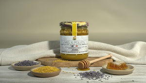 This blend unites the floral delicacy of Lavender Honey with the nutritional richness of pollen, offering a complete and revitalizing hive product.