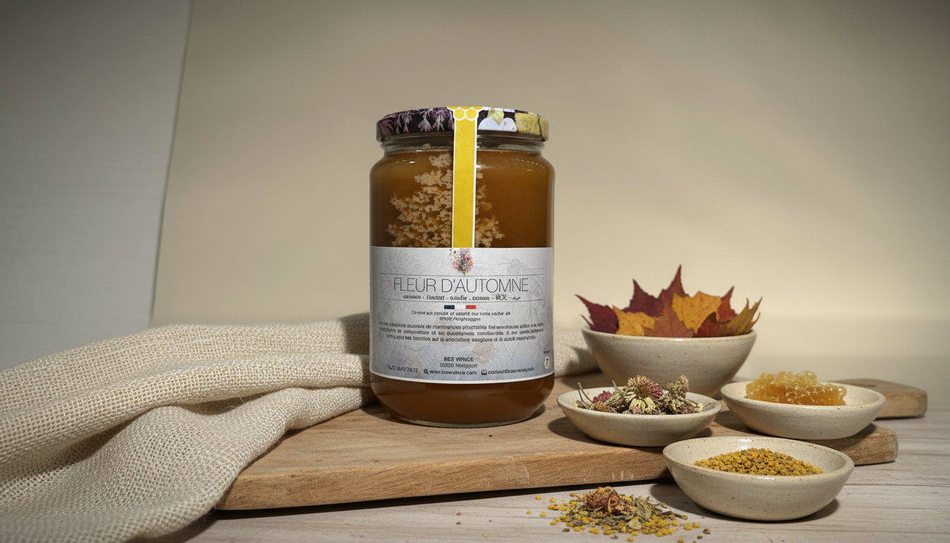 - Benefits: Polyfloral honey from autumn flowers is renowned for its toning, antioxidant, soothing and immune-boosting properties.
