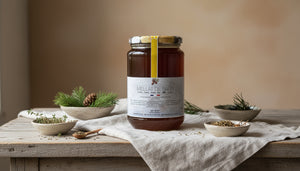 Discover fir honey, a treasure of nature with a unique and intense flavor, harvested in the heart of mountain forests where fir trees reign supreme. This exceptional honey is a true gift from nature, offering a surprising and authentic taste experience.