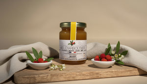 Notre miel d'arbousier est récolté dans des régions sauvages et préservées, où l'arbousier pousse en abondance. L'arbousier, également connu sous le nom d'"arbre aux fraises", est un arbuste méditerranéen aux fleurs blanches et aux fruits rouges. Les abeilles butinent ses fleurs en automne, offrant un miel rare et précieux.