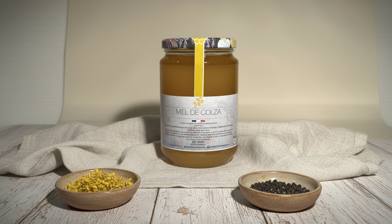 - Vertus : Le miel de colza est réputé pour ses propriétés tonifiantes, revitalisantes et bénéfiques pour le système immunitaire. Il est riche en oligo-éléments et en vitamines.