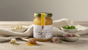 Découvrez le miel de trèfle, un trésor de la nature à la saveur douce et florale, récolté au printemps et en été, lorsque les trèfles sont en fleurs. Ce miel monofloral d'exception est un véritable symbole des prairies fleuries, offrant une expérience gustative fraîche et authentique.