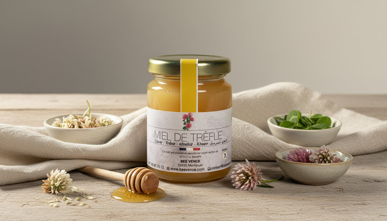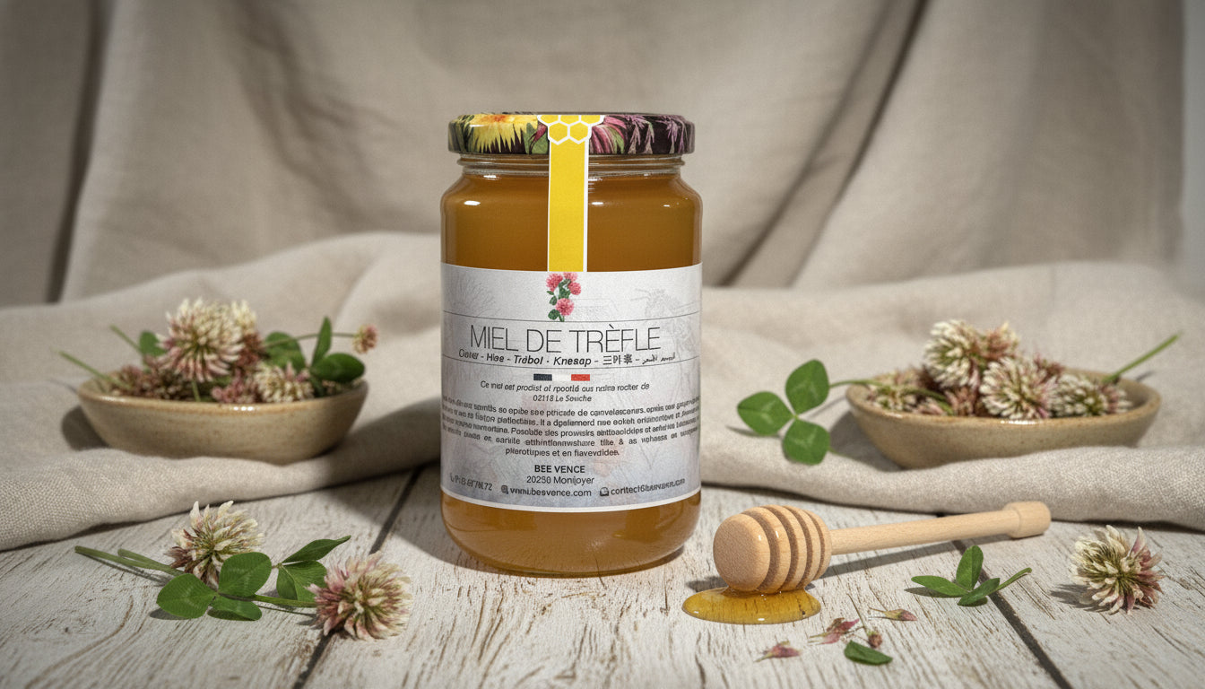 Miel de Trèfle : Un Nectar Doux et Floral des Prairies Fleuries